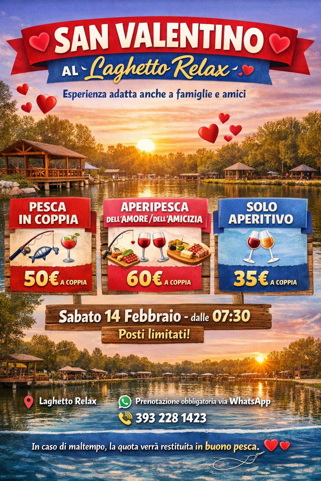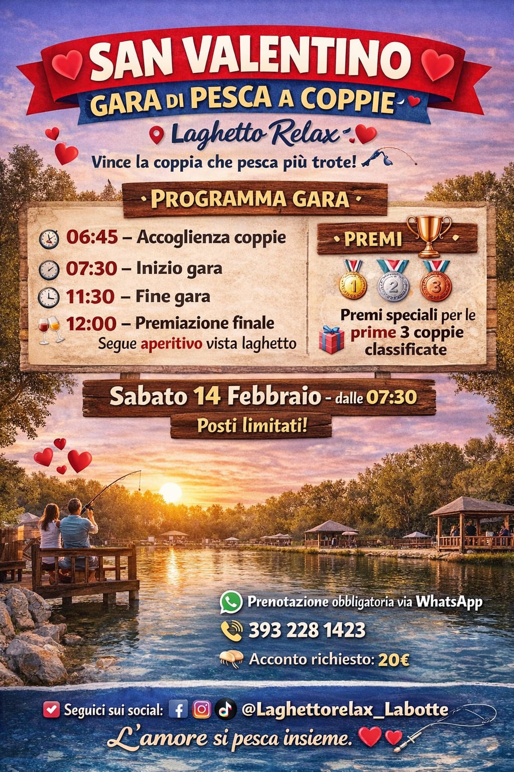 Il nostro spazio nasce con un obiettivo semplice. Offrire un posto accogliente dove godersi la natura, il silenzio, la pesca sportiva e tutto ciò che rende una giornata all’aria aperta davvero rigenerante. Negli anni abbiamo creato un ambiente curato, pulito e adatto a tutte le età. Che si tratti di una giornata in famiglia, di un pomeriggio tra amici o di un’occasione speciale, qui trovate sempre un’atmosfera rilassata e piacevole.